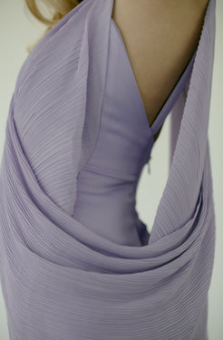 Crafted from an ethereal, soft lilac pleated fabric that floats with every step, Elena dress is a celebration of feminine ease and modern charm. Her flattering silhouette features a gathered bust, and an alluring open back that evokes a sense of effortless sensuality. The skirt falls into a gentle flare, offering movement and lightness with every twirl. Perfect for golden hour moments or balmy summer nights, Elena is the kind of piece that feels like a memory the moment you slip her on.